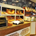 ארוחת בוקר קונטיננטלית מוצעת במסעדה. המלון מזמין את אורחיו לבר חטיפים כדי להרפות עם משקה.
